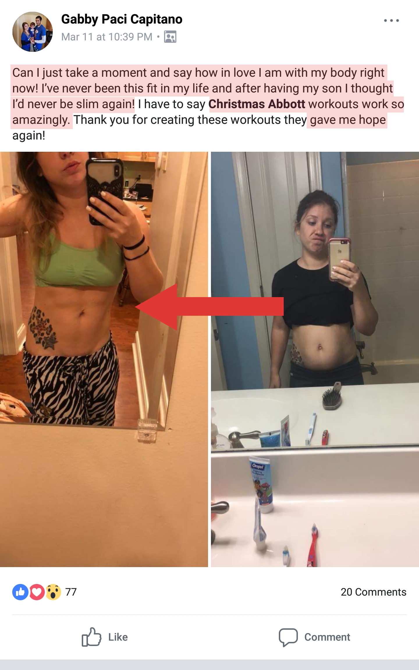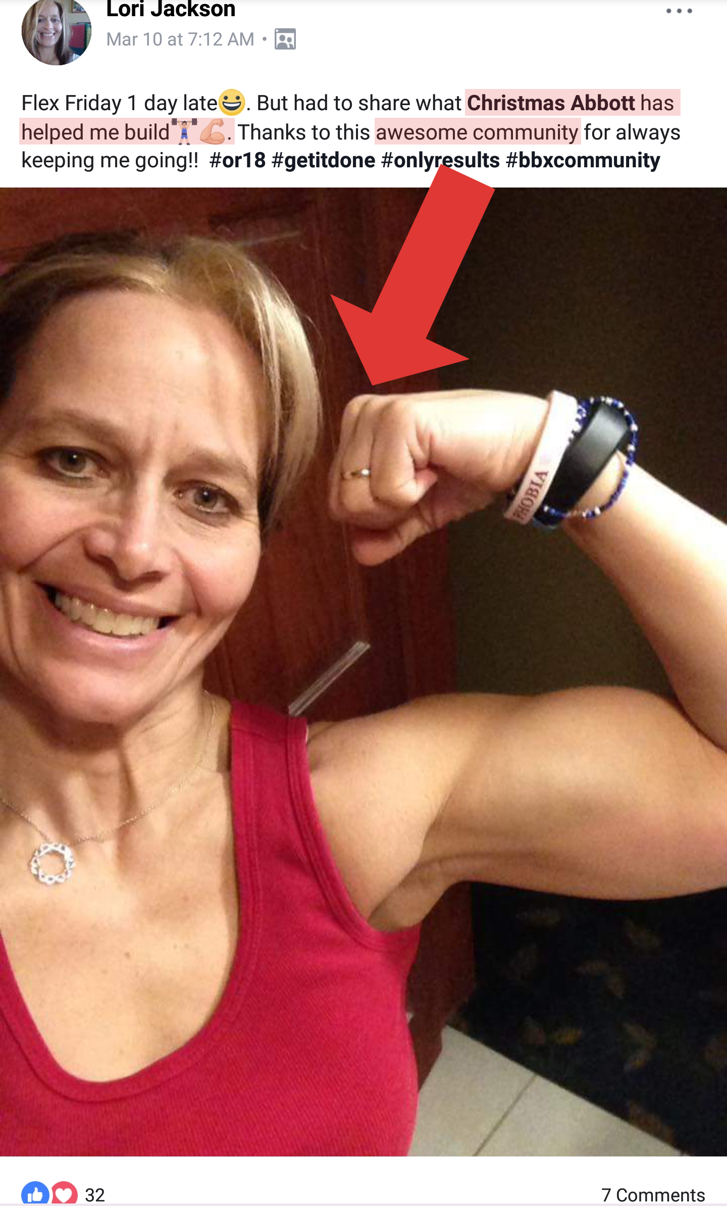 "I've lost body fat, gained muscle and found muscles I didn't even know I had. It's been so much fun to learn the new workouts and the recipes are delicious! I would recommend Christmas Abbott's training to anyone!"