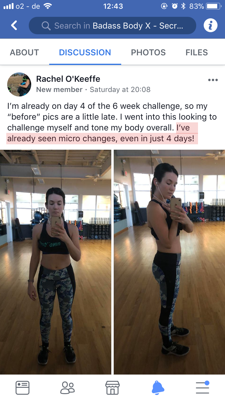 I’ll be your virtual personal trainer, coaching you through every workout. My badass mindset training will help you stay motivated and deal with any setbacks. I’ve helped thousands of clients overcome their barriers and I can help you too.
