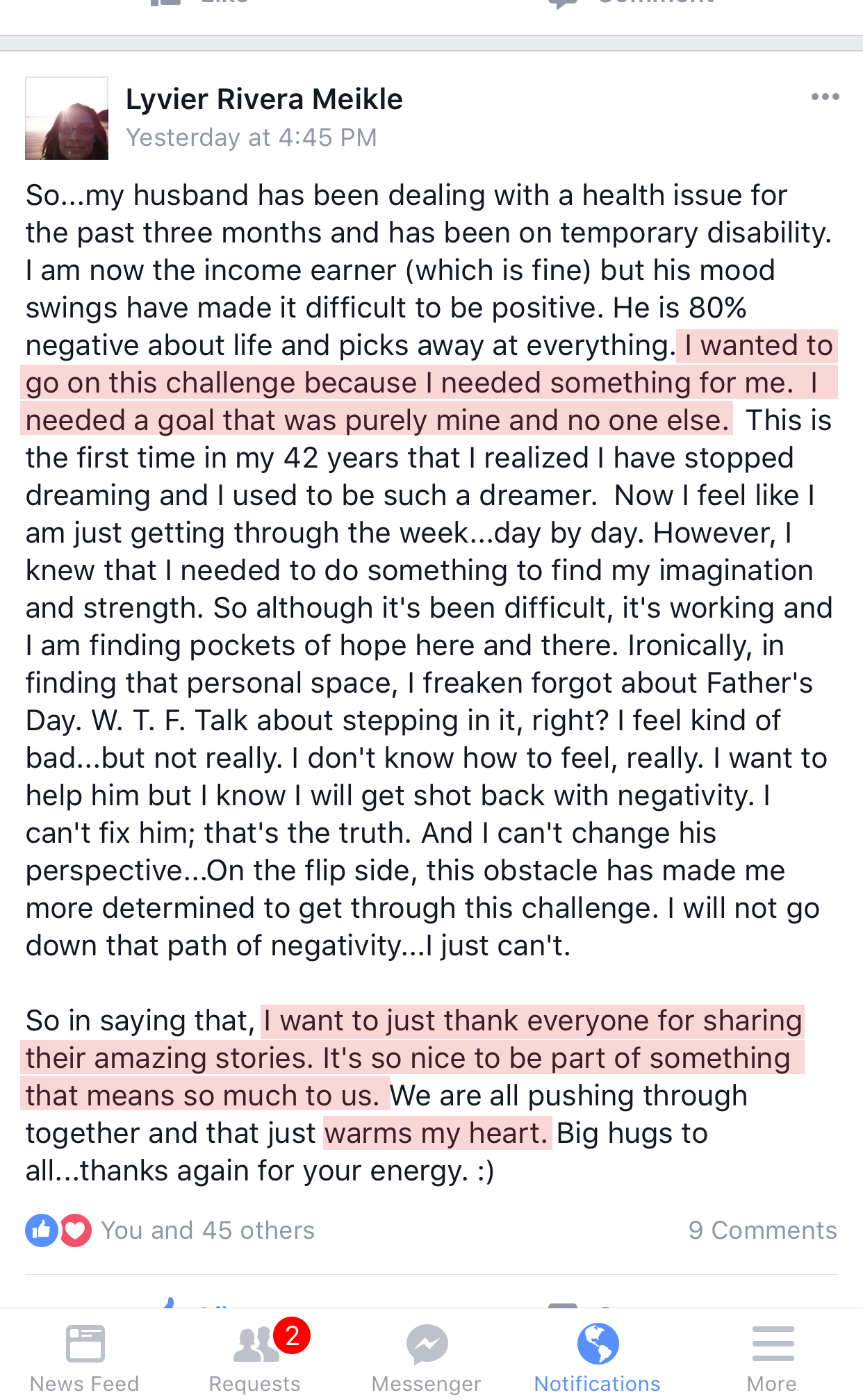 I had to start taking care of myself, valuing my own health and wellbeing.