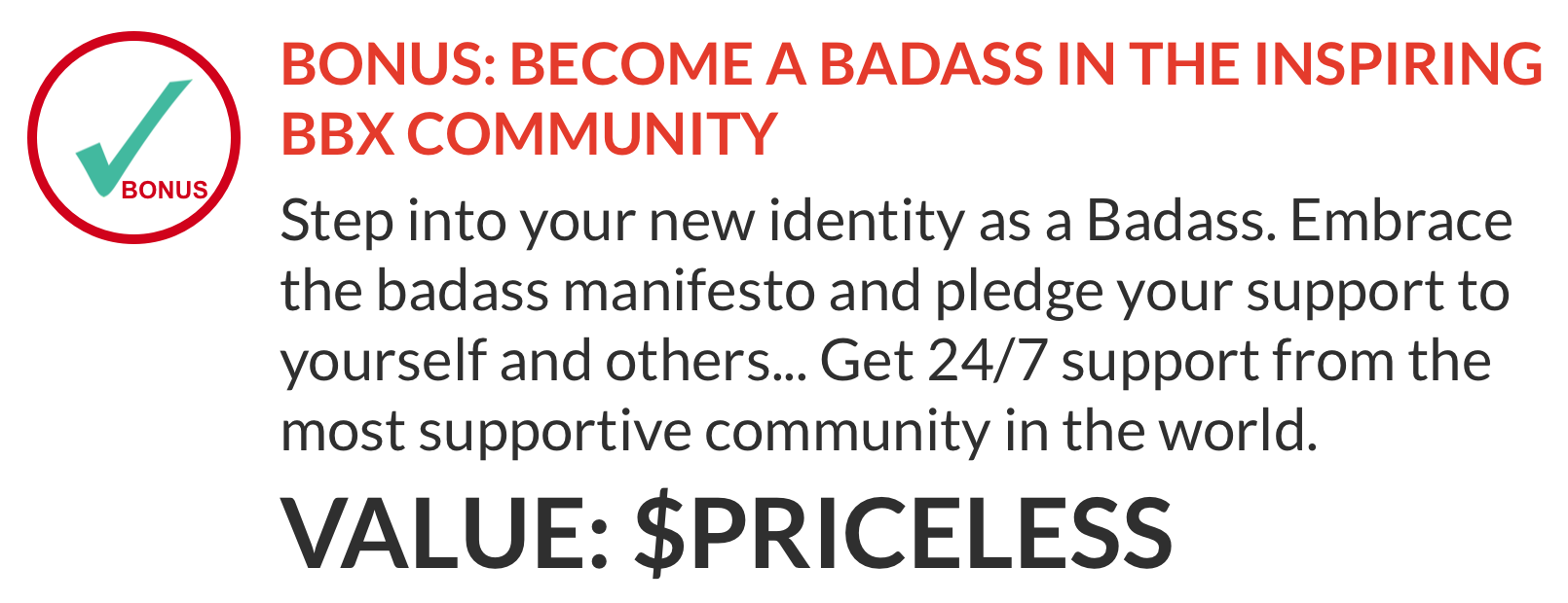 BONUS: Become a Badass in the inspiring BBX community - Value $PRICELESS